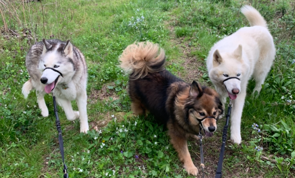 I am mom to three adorably goofy dogs who love to hike, dogsled, and hang out with me wherever I go… especially on r-i-d-e-s (shhhh)! These guys always make me laugh and smile with their antics – I had to share!